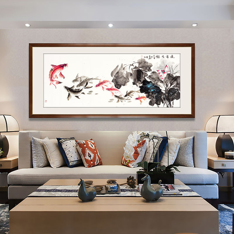 国画连年有余荷花挂画中式沙发背景墙装饰