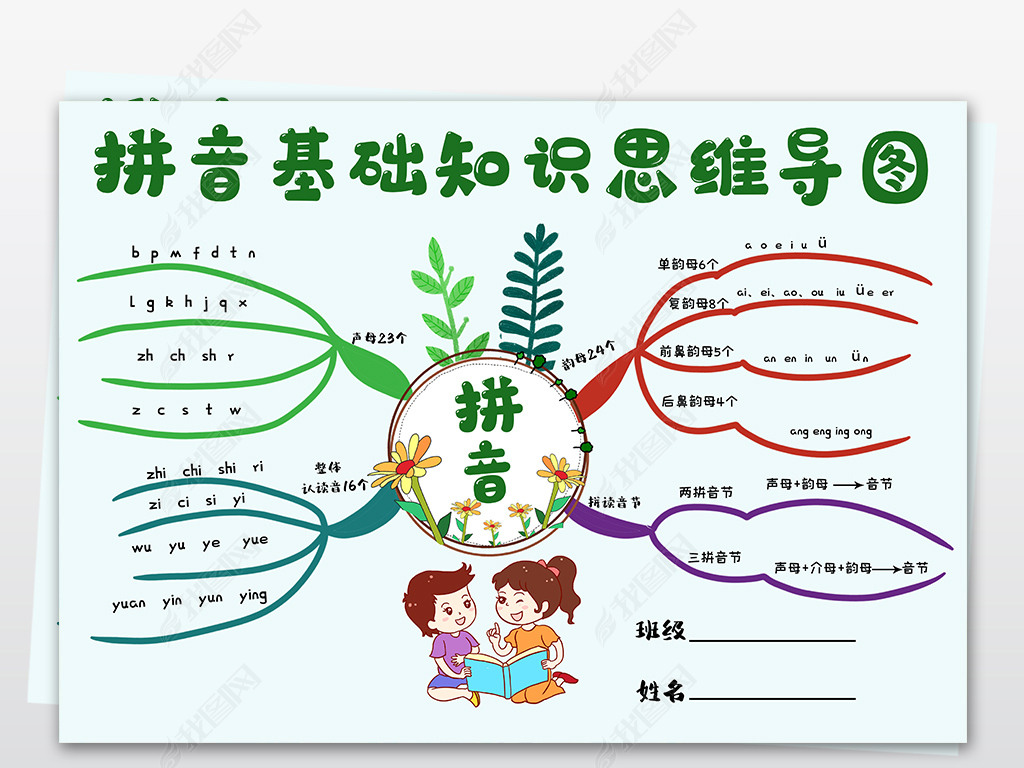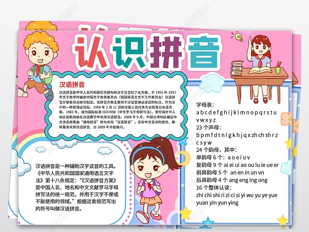 拼音王国思维导图认识拼音小报认识字母声母手抄报电子小报