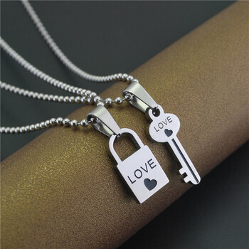 锁和钥匙情侣项链一对吊坠 白金色一对