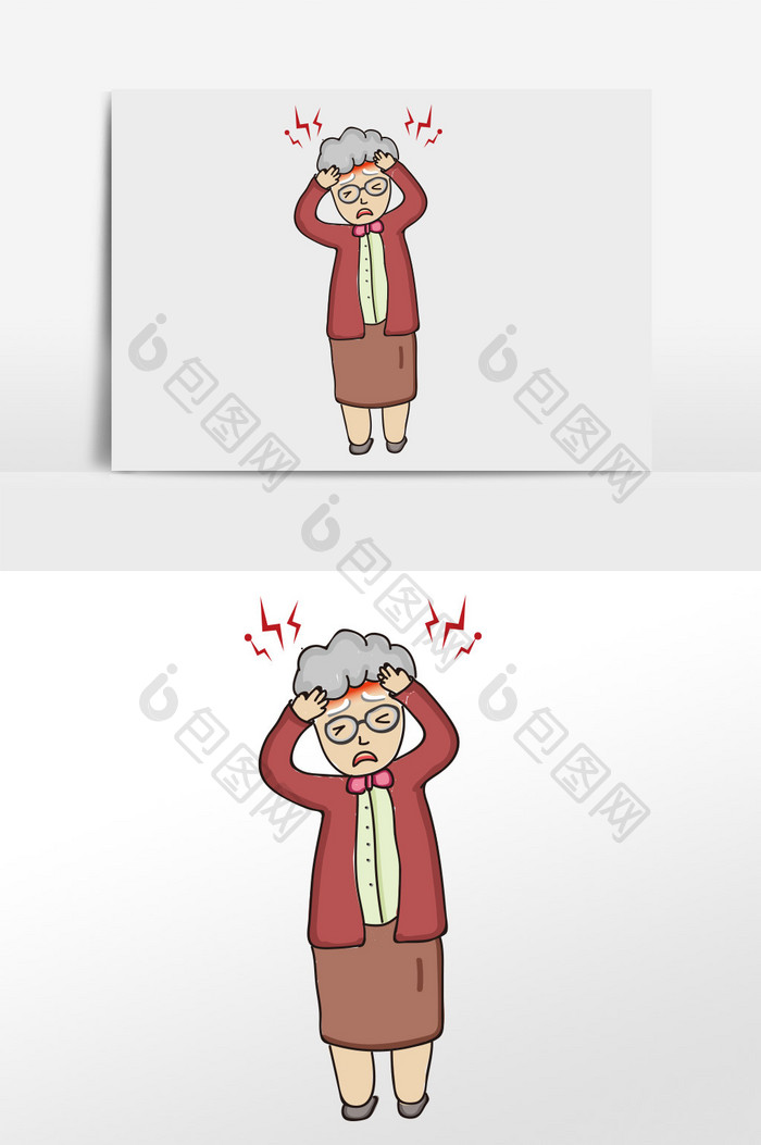 卡通可爱老人头疼】图片下载-包图网