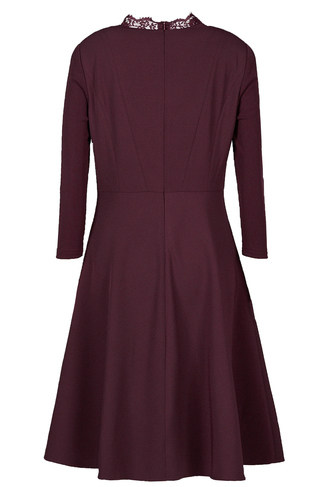 Koradior-珂莱蒂尔品牌女装2018秋装新款红色修身显瘦蕾丝连衣裙