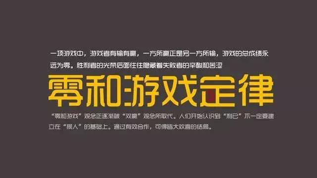 什么叫零和游戏?- 答:胜利者的光荣后面往往隐藏着失败者的辛酸和苦涩。 20世纪,人类经历两次世界大战、经济高速增长,科技进步、全球一体化以及日益严重的环境污染,零和游戏观念正逐渐被双