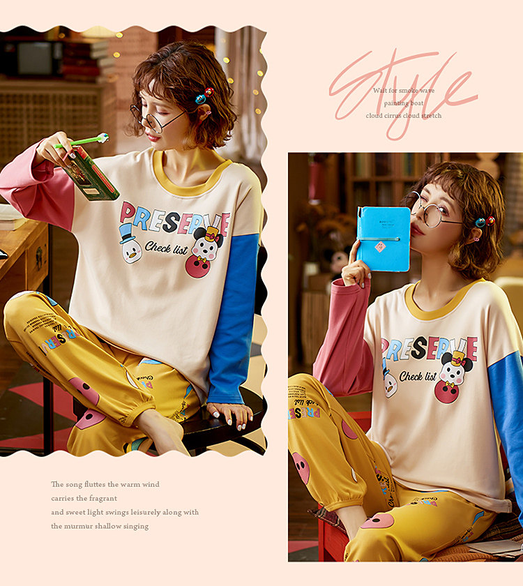 【韩贵蝶】春秋季睡衣女英文卡通纯棉长袖