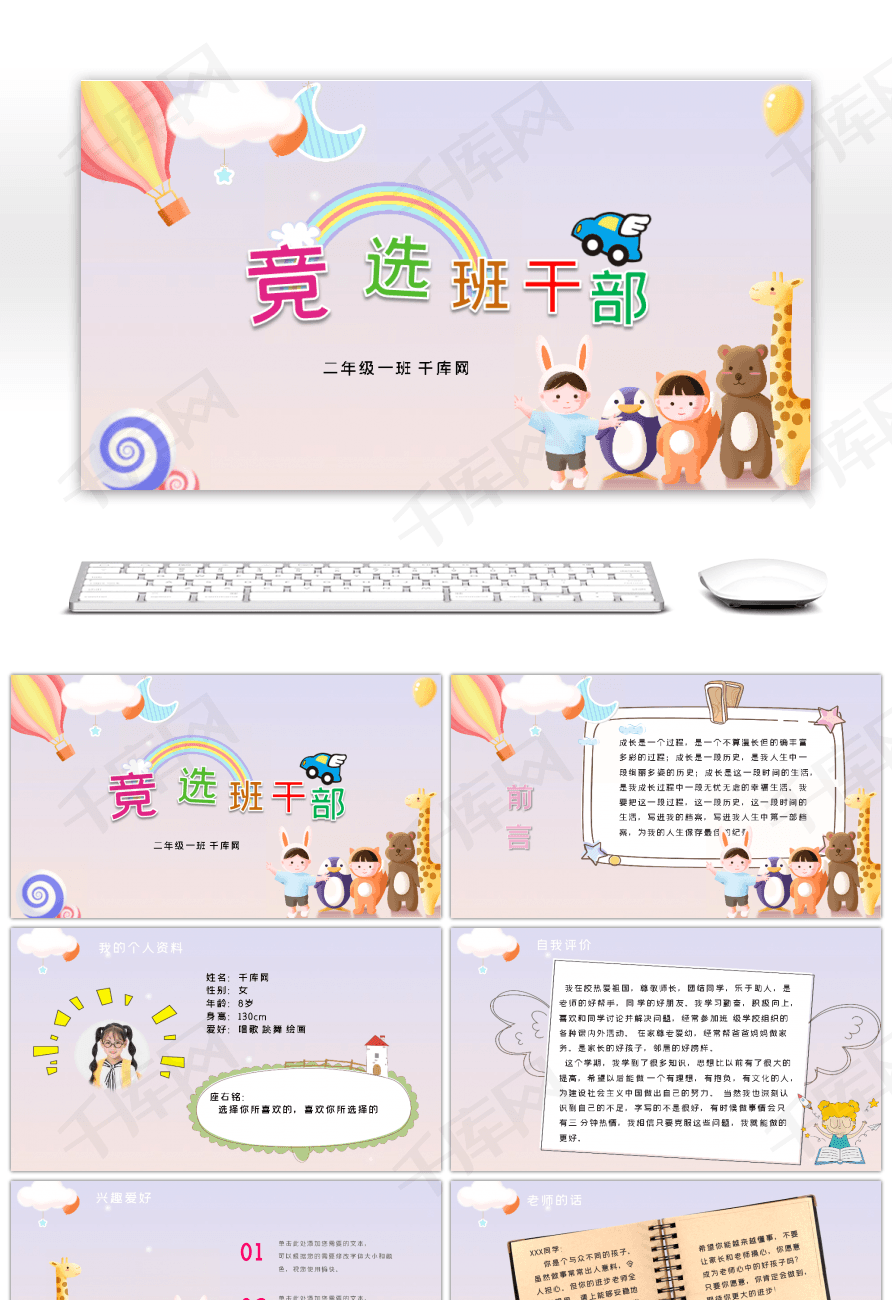 【多彩卡通小学生班干部竞选】ppt模板下载(pptID112841)
