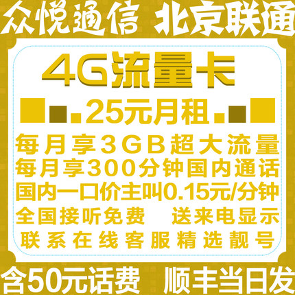 联通流量王卡,仅50元:9G超大流量+600分钟