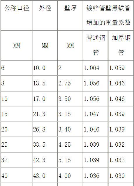 常用镀锌钢管规格表\/重量表|镀锌钢管|规格表|重量_新浪网