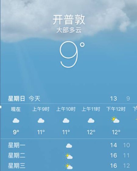 开普敦天气预报