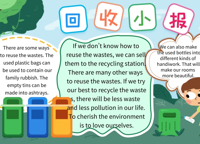 简约生活卡通环保回收英语小报手抄报
