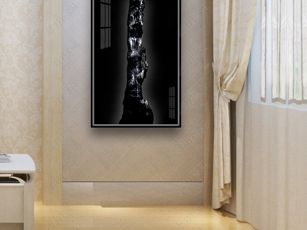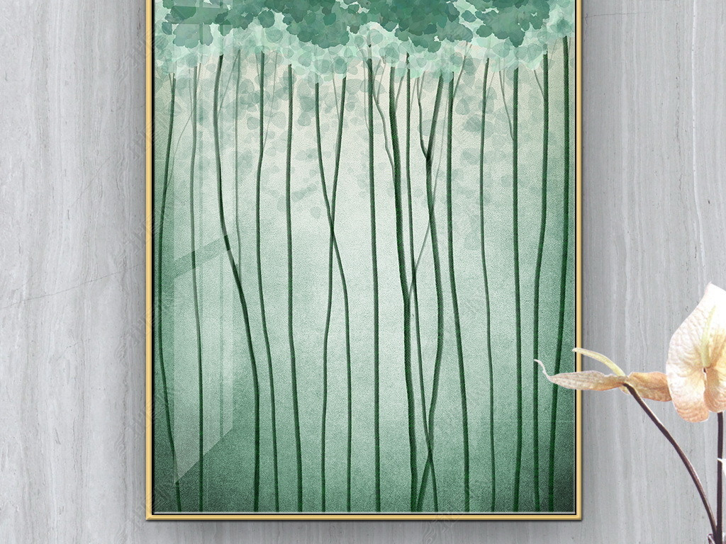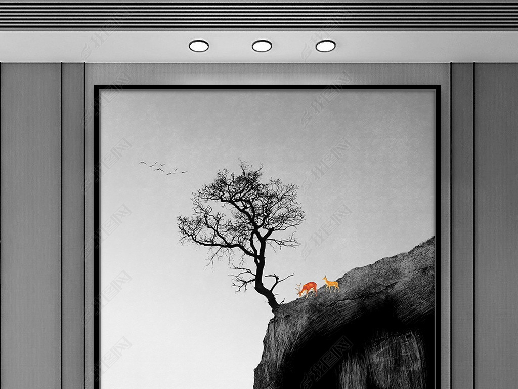 简约抽象画轻奢北欧晶瓷画枯树麋鹿装饰画入户玄关画