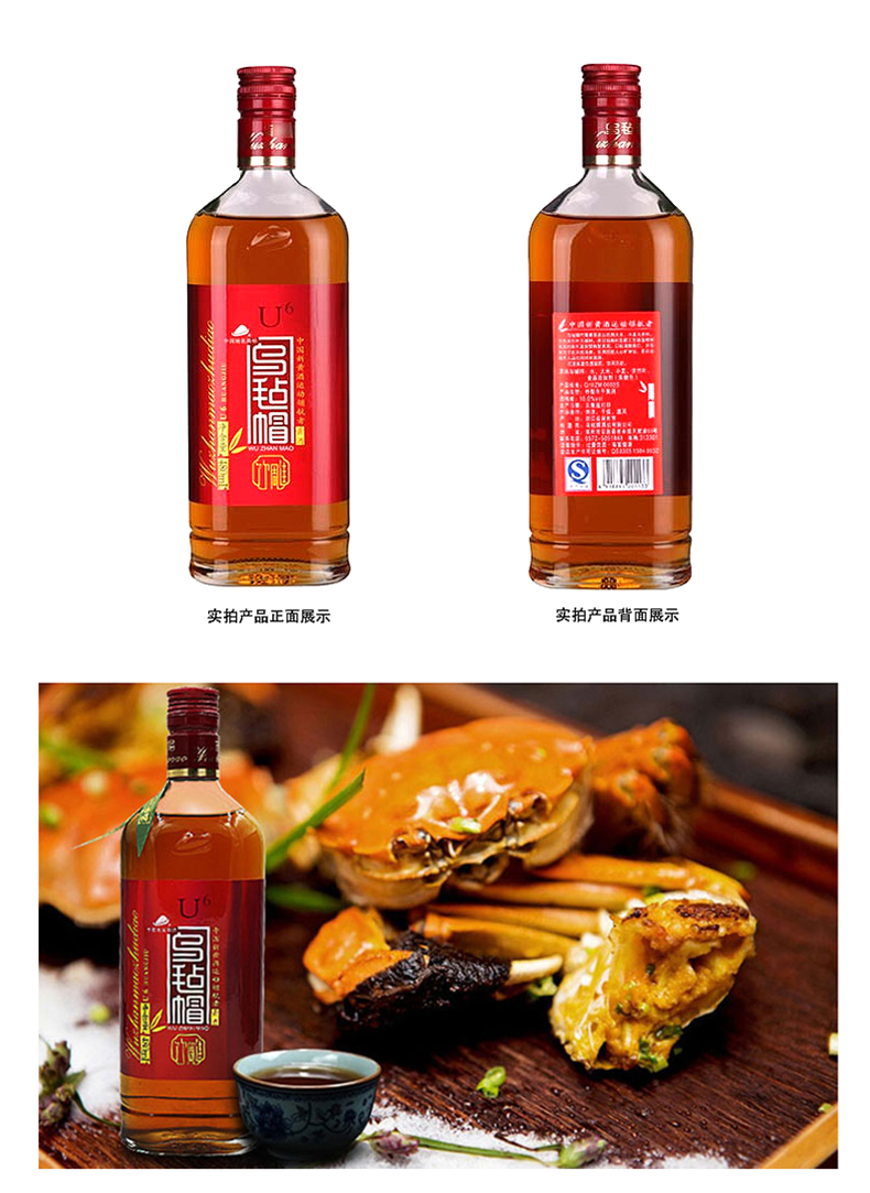 乌毡帽 绍兴工艺黄酒 U6半干型黄酒 480ml*