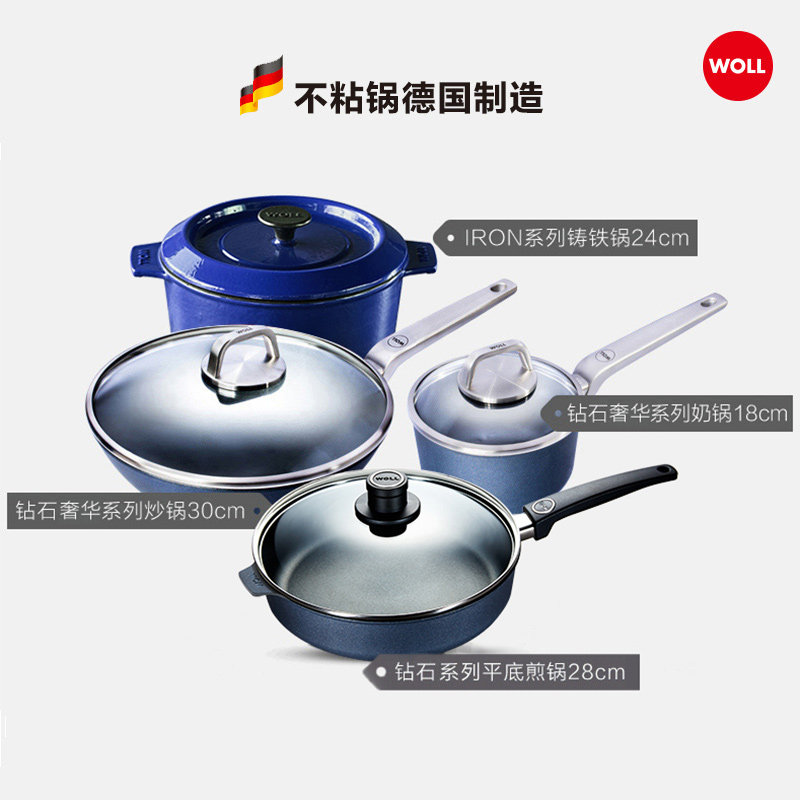 WOLL德国进口不粘炒锅平底煎锅奶锅钻石