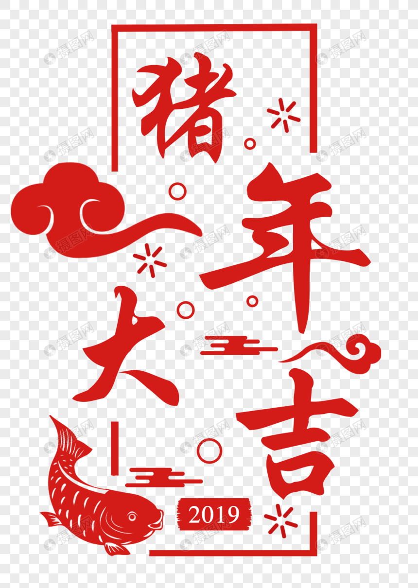 猪年大吉剪纸字体元素素材PNG格式_设计素材免费下载_VRF高清图片