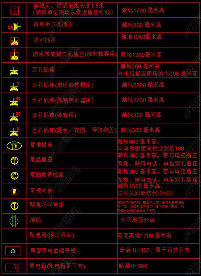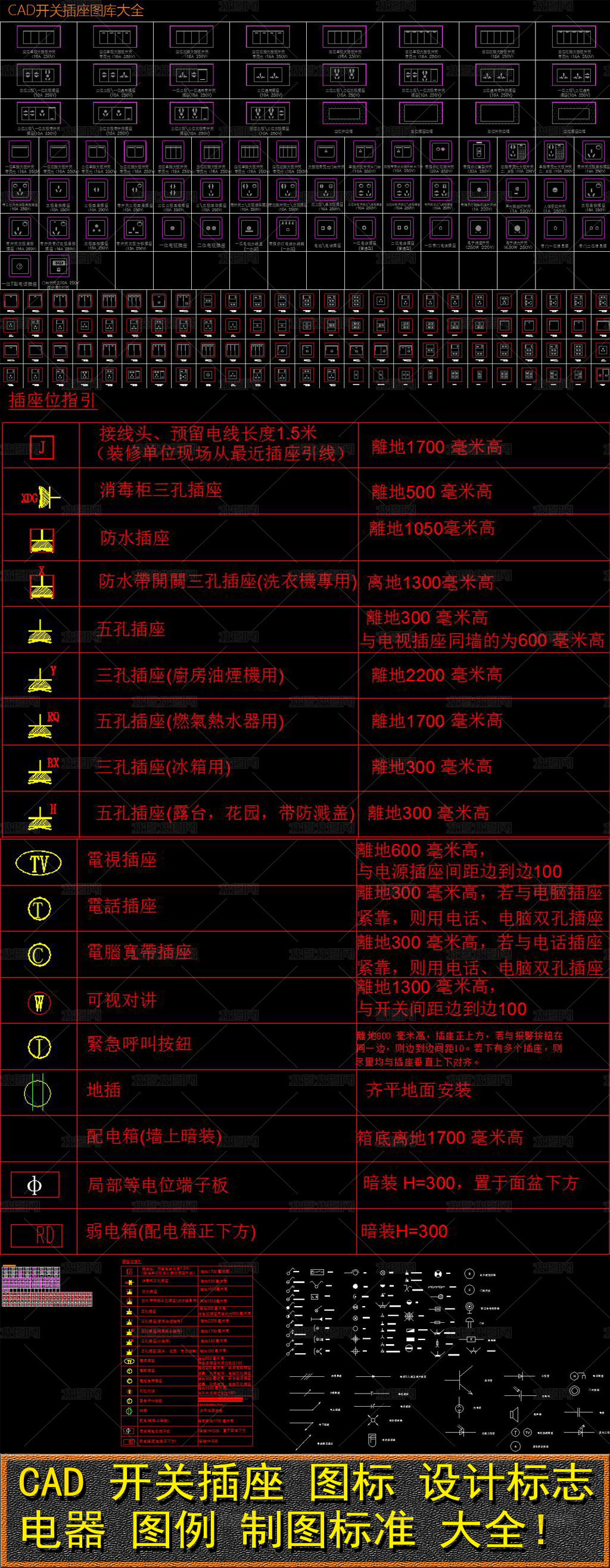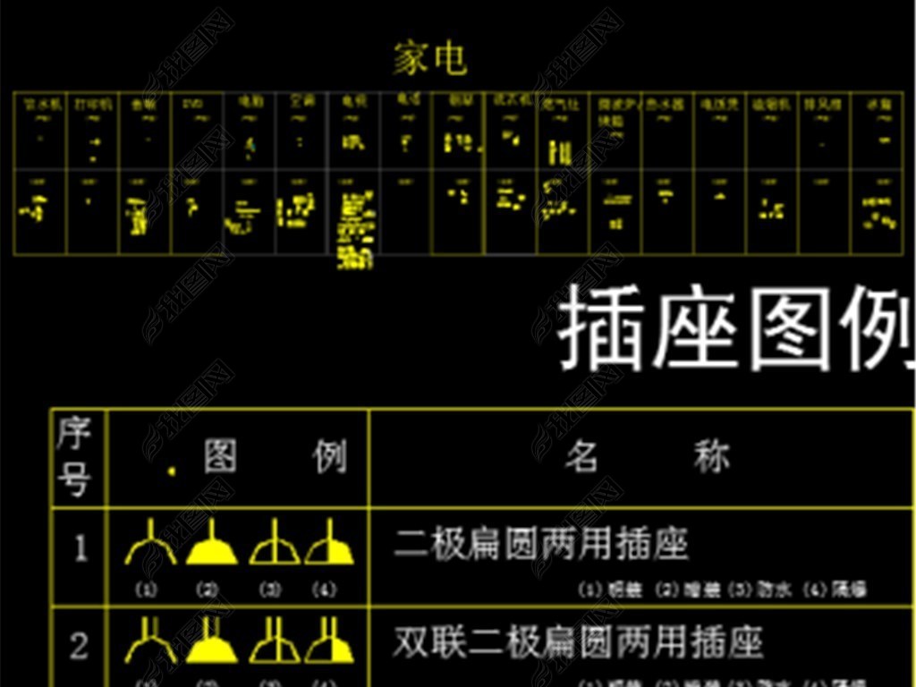 家装CAD制图模板--标准线性-标注样式-开关插座图例等