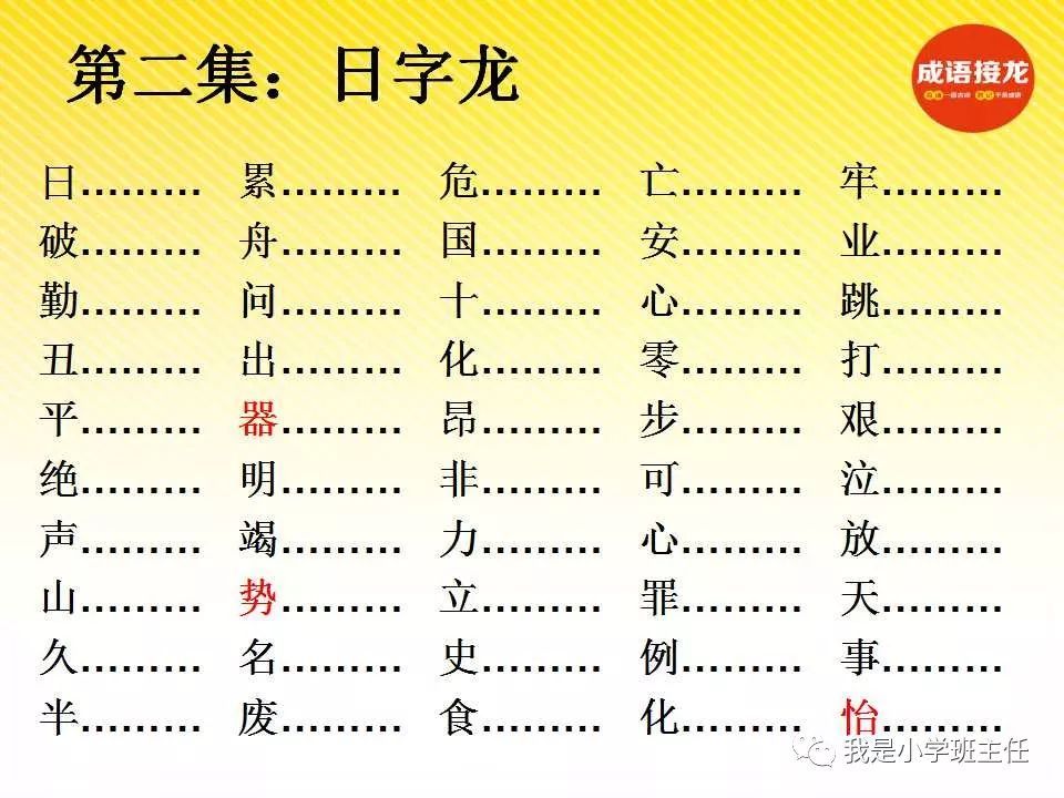 成语接龙 第二条:日字龙