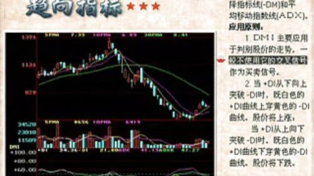 简介:DMI指标又叫动向指标或趋向指标,其全称叫"Directional Movement Index,简称DMI",也是由美国技术分析