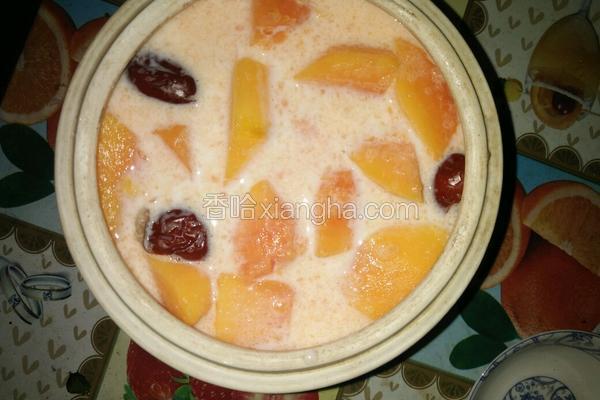 红枣木瓜炖牛奶