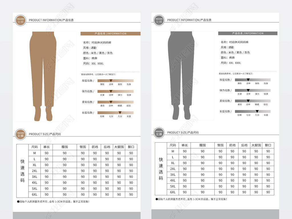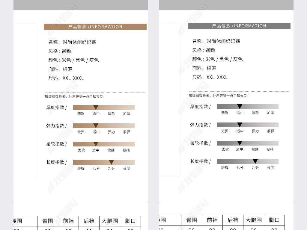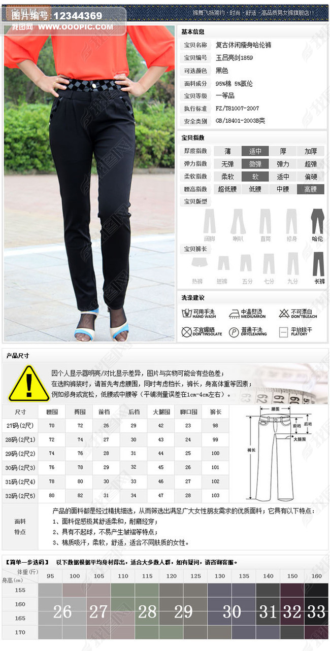 淘宝天猫详情描述产品信息尺码表妈妈装女裤