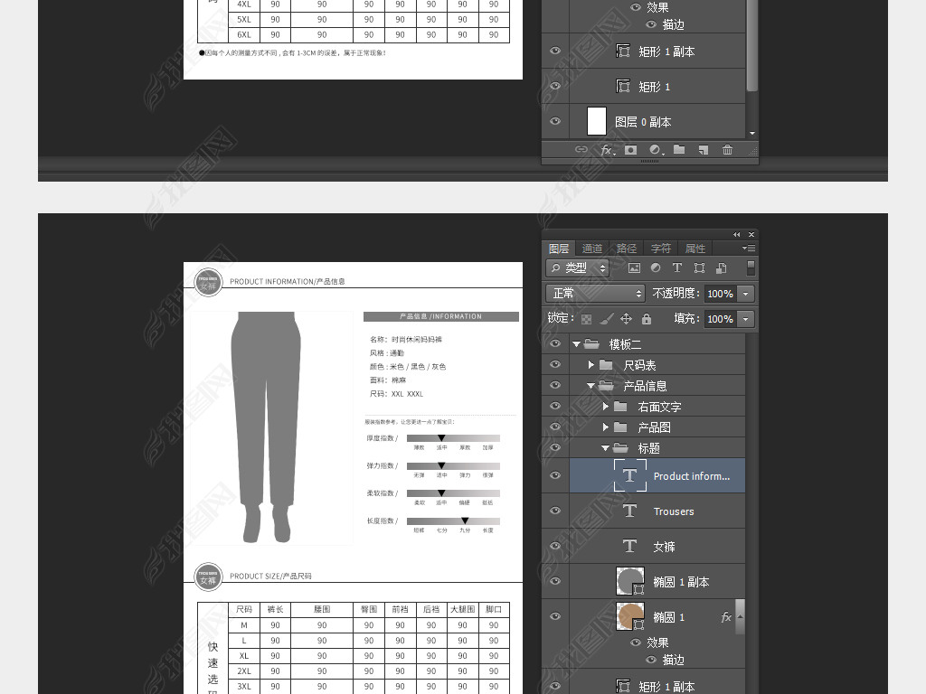 女裤尺码表详情页模板