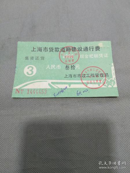 1993年上海市贷款道路建设通行费(30元)