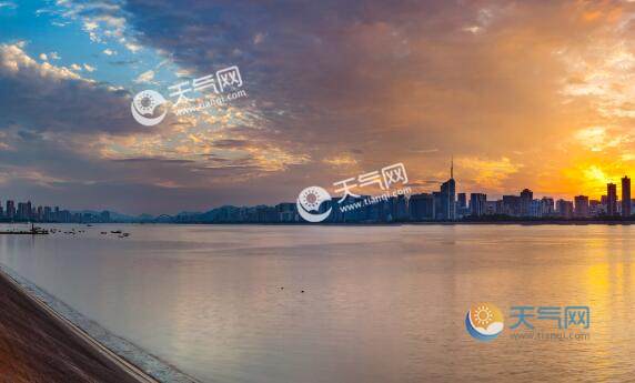 浙江省杭州市钱塘江对面建筑夜景晚霞