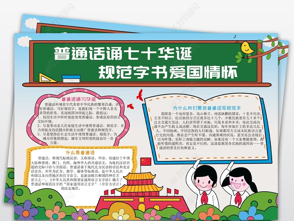 说普通话写规范字手抄报普通话电子小报模板