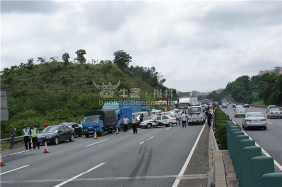 [组图]泥头车小车相撞 机荷高速大塞车(获奖)