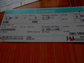 日本 飞机票 JAPAN AIRLINES ECONOMY