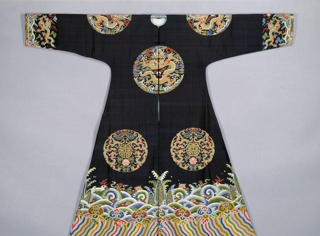 故宫博物院藏· 清代石青绸绣金龙吉服褂