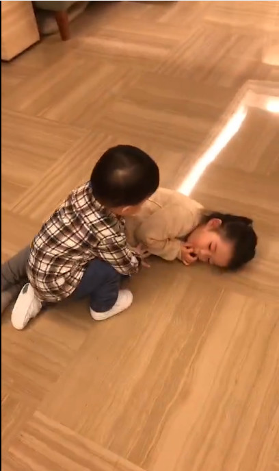 王栎鑫晒儿女萌照,姐弟俩太有爱,姐姐躺