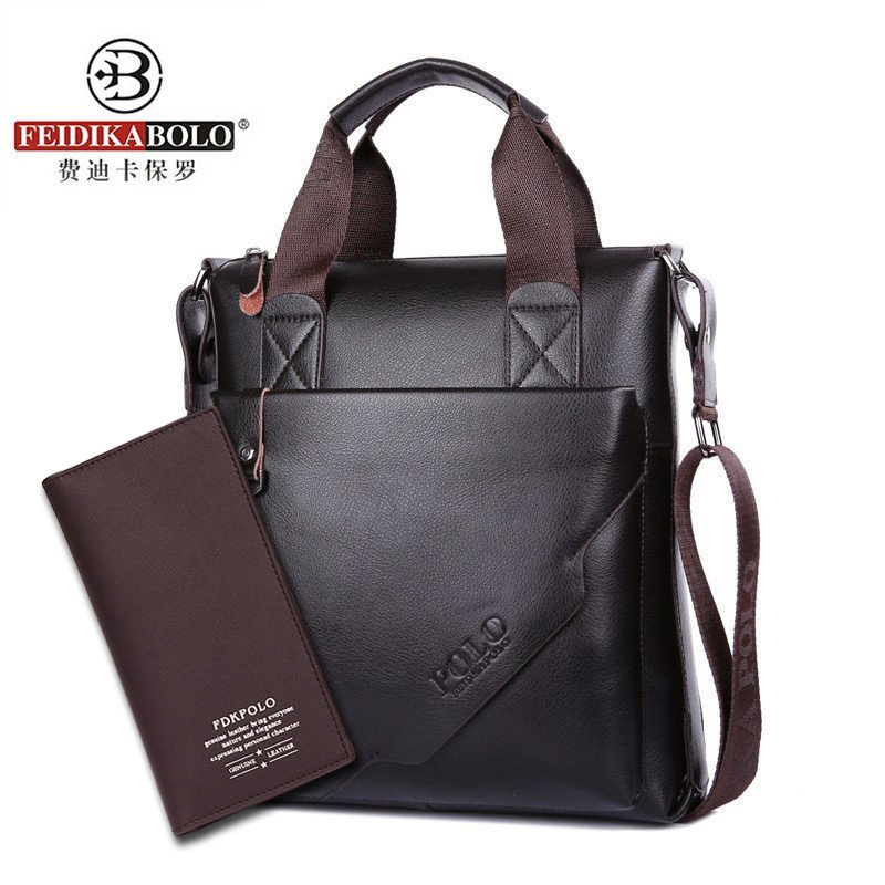 费迪卡保罗真品皮包男包男手提包竖款黑色