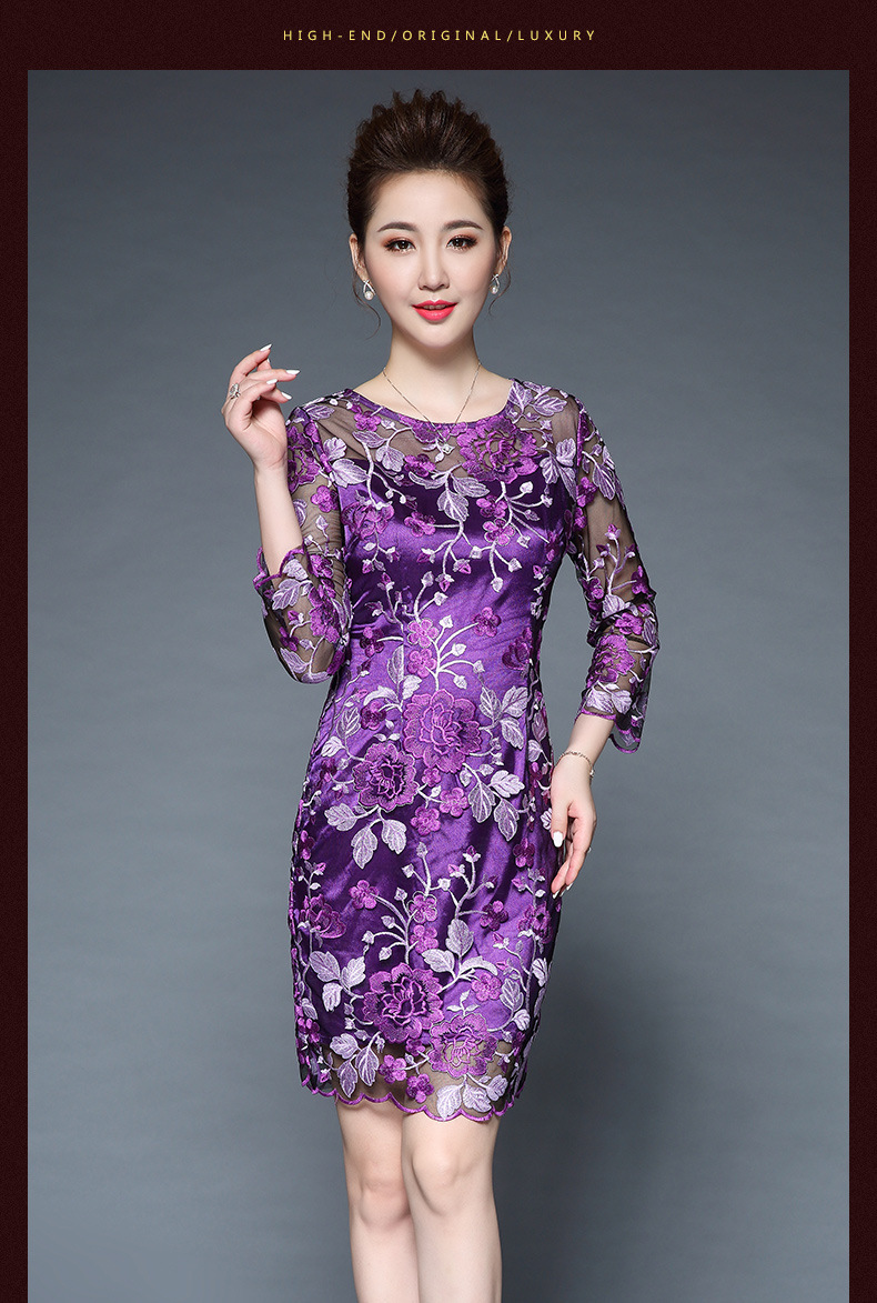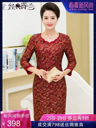 装春装蕾丝连衣裙婚宴婆婆装婚庆宴会礼服