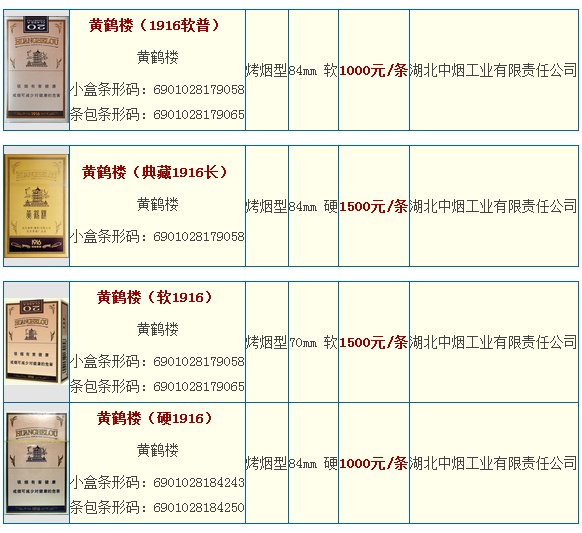 黄鹤楼香烟价格表一览黄鹤楼1916 黄鹤楼香烟价格表一览