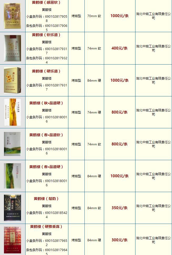 2018最新黄鹤楼硬大彩香烟价格表图一览
