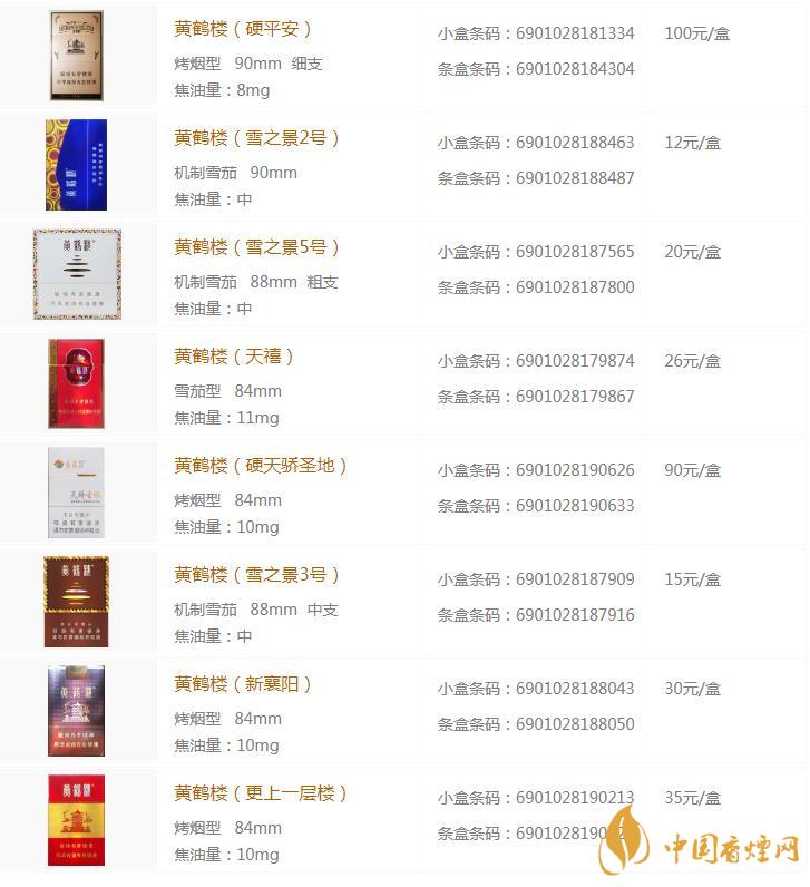 最新黄鹤楼香烟价格表图一览,黄鹤楼香烟多少钱