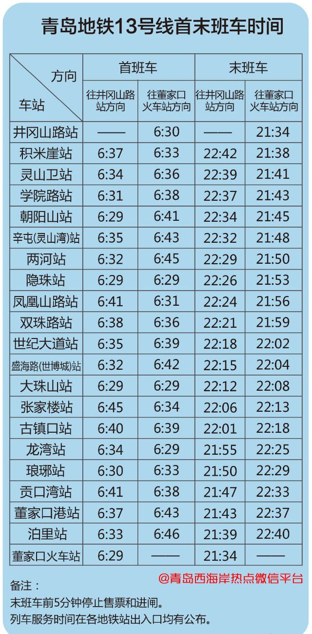 青岛地铁13号\/2号\/3号\/11号线班车时间表!