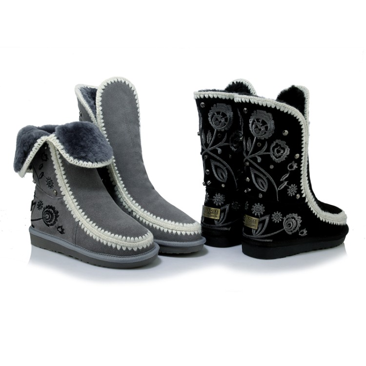 2016冬季新款雪地靴女中筒平底水钻加绒加厚保暖棉靴羊皮毛一体潮