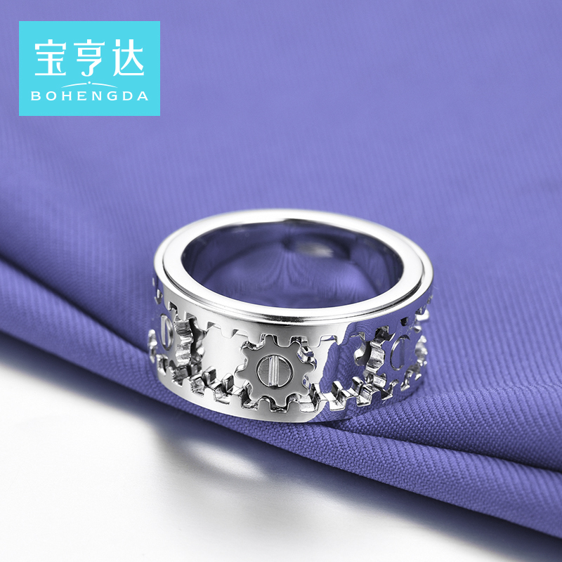 BOHENGDA\/宝亨达男士齿轮可旋转戒指Pt