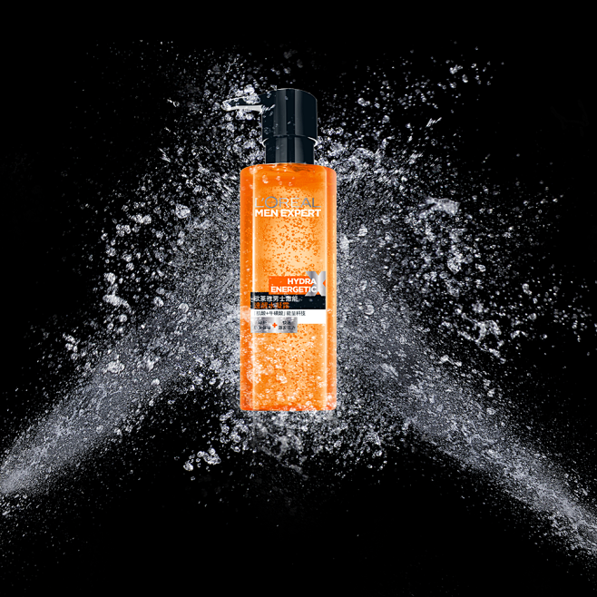 欧莱雅男士 护肤品化妆品 飞溅水花冲击产品 创意合成素材