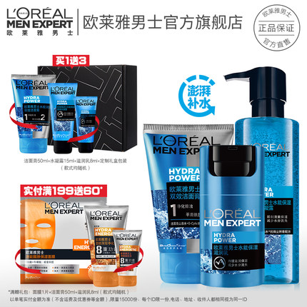 欧莱雅男士护肤品套装水能保湿补水面霜水乳爽肤水男士洗面奶正品