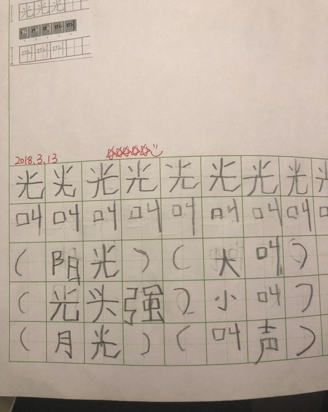 7岁小亮仔字写的不错,但组词、造句亮了