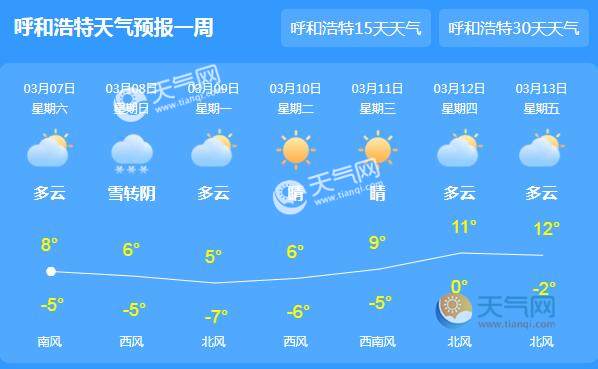 内蒙古天气依旧晴暖 呼和浩特气温升至7℃