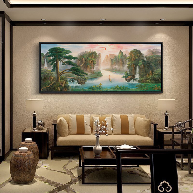 客厅沙发背景墙装饰风水招财山水画横款挂画壁画万里长城画靠山图都市诱惑