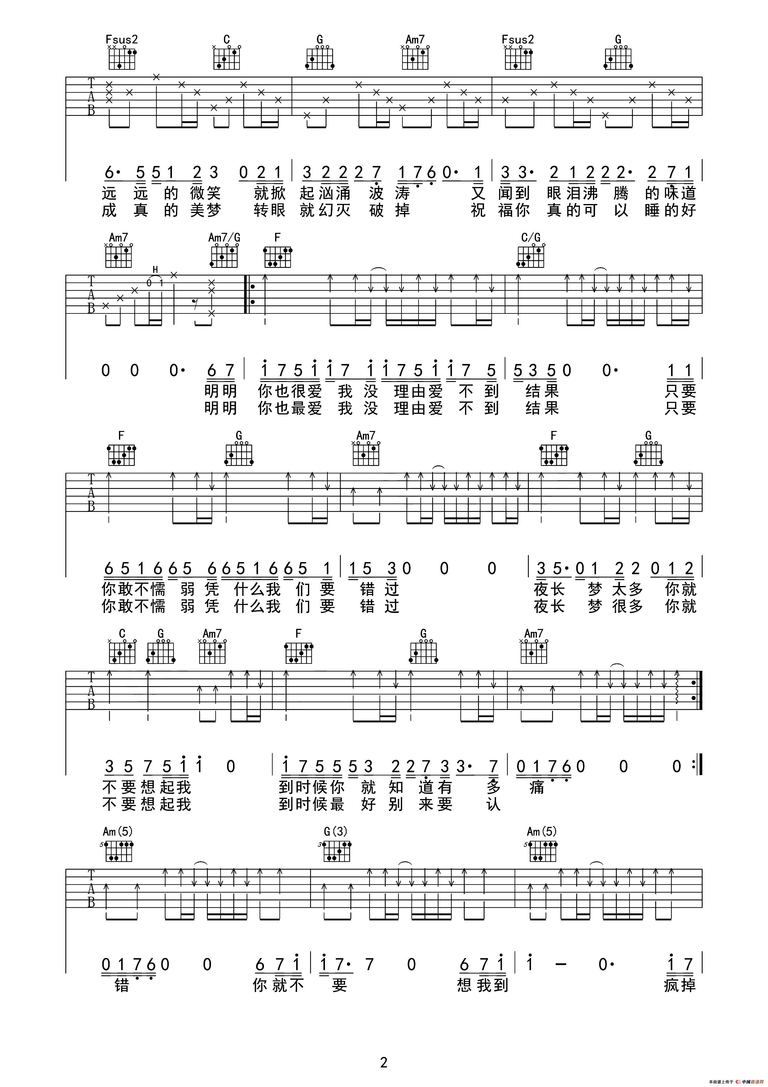 你就不要想起我(吉他六线谱)_简单吉他个人