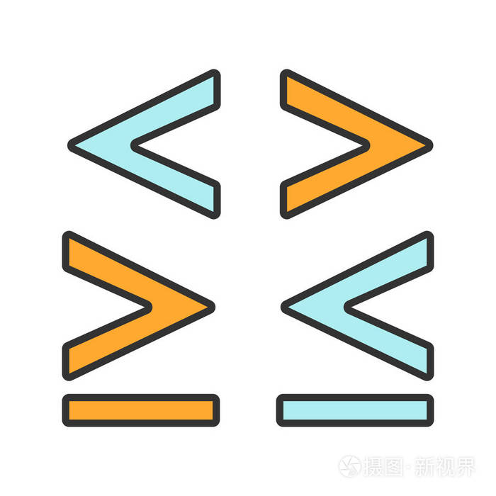 数学符号颜色图标。比符号少, 大于或等于。孤立向量插图