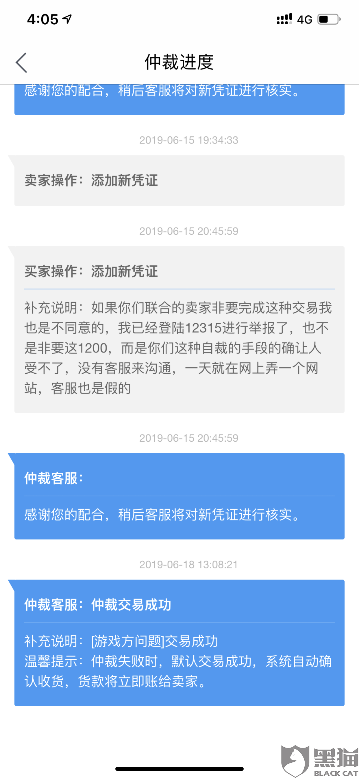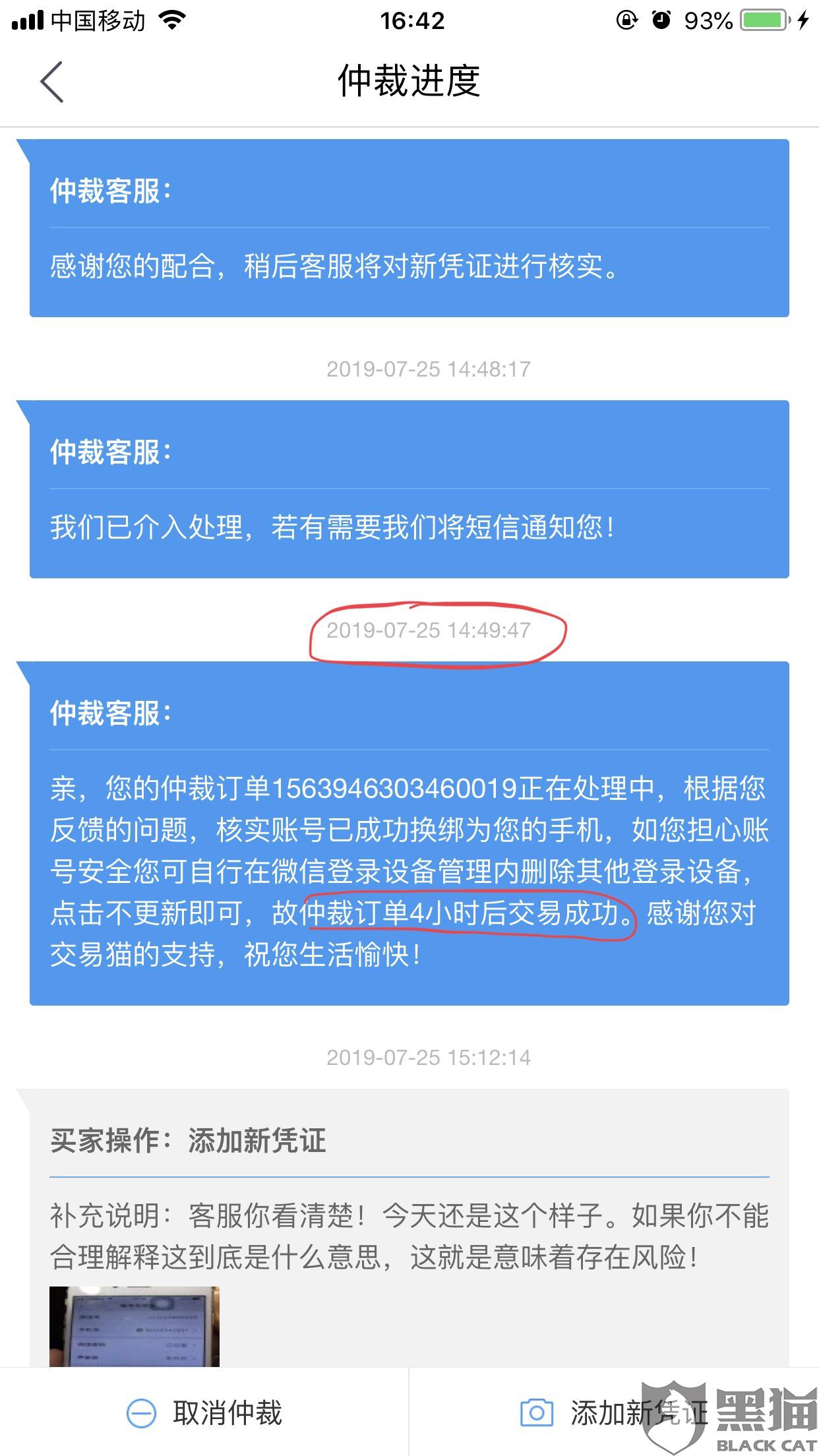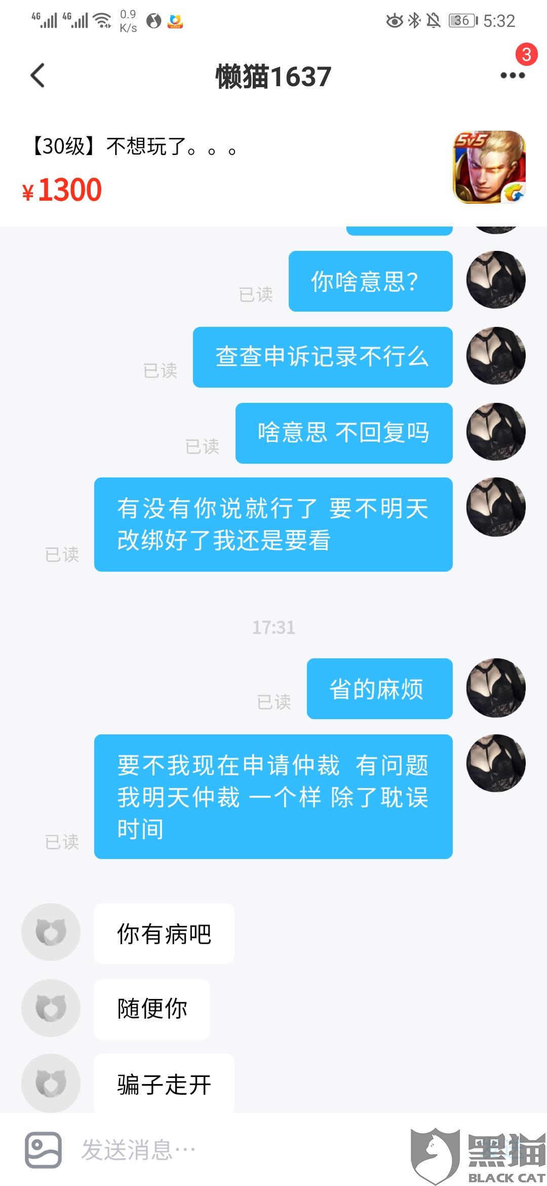 黑猫投诉:交易猫仲裁问题