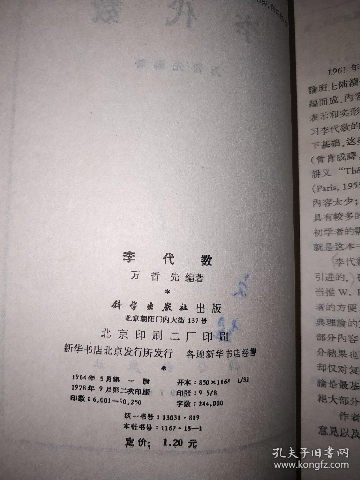 李代数(万哲先) xhl-p_网上买书_收藏品交易