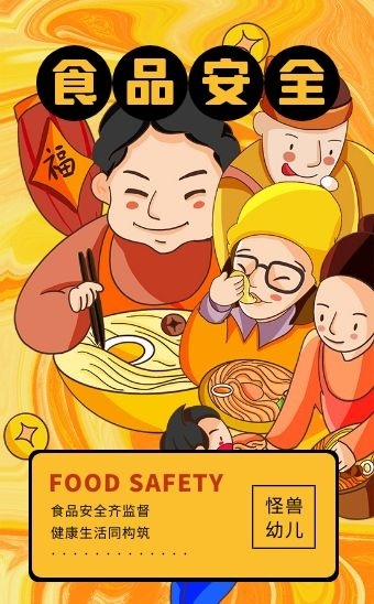 黄色卡通学校幼儿园食品安全宣传H5模板