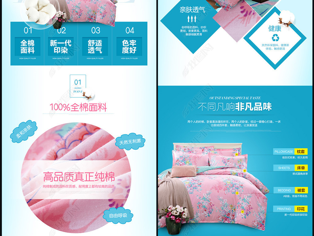 淘宝天猫蚕丝被详情页模板PSD源文件