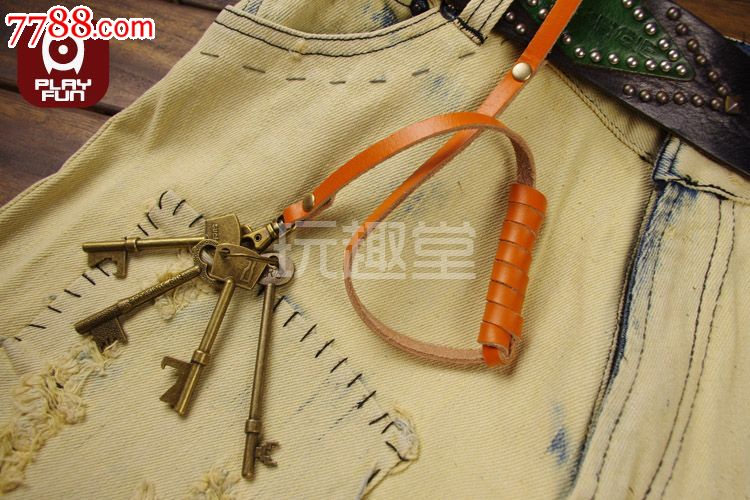 FUN私家定制纯牛皮枪纲钥匙链皮裤链