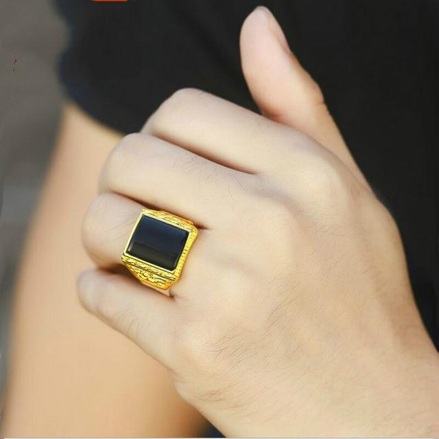 黄金戒指男士999足金和田碧玉戒指金戒